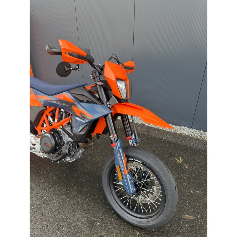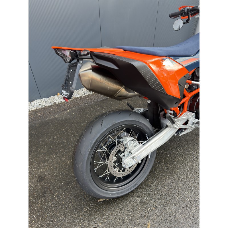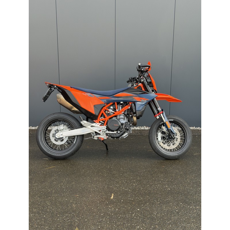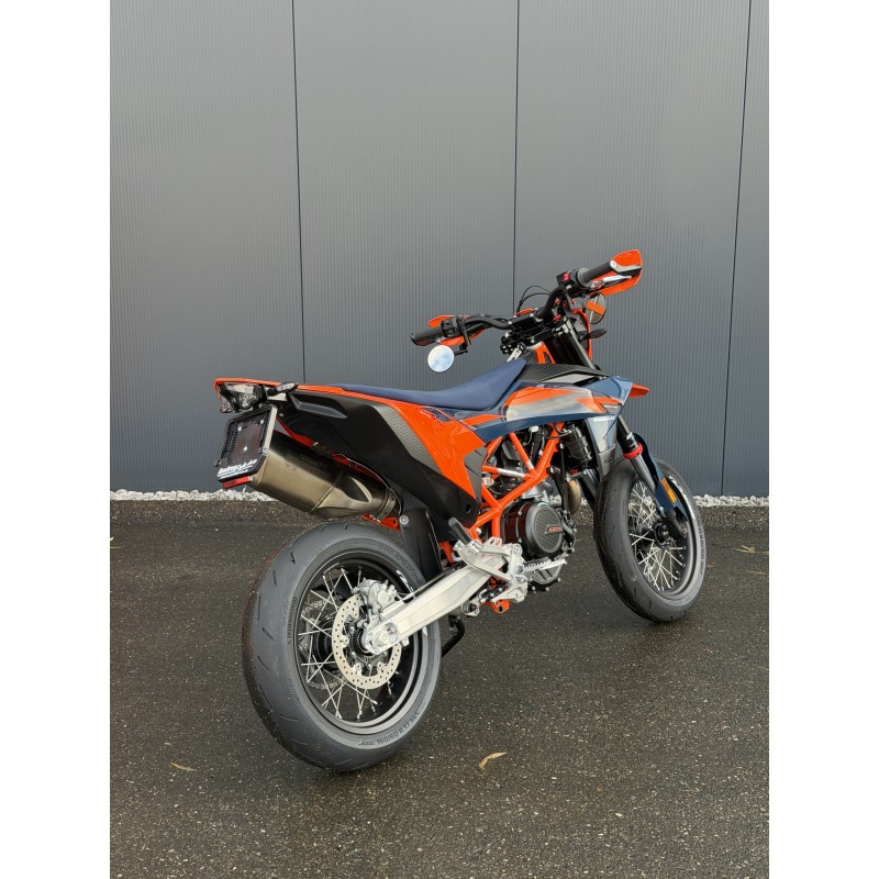 La KTM 690 SMC R oblitère la concurrence et s'impose comme le roi incontesté de sa catégorie. Offrant au pilote une maniabilité agile, la meilleure puissance de sa catégorie et une ergonomie axée sur le pilote, la KTM 690 SMC R incarne la notion de PRÊT À LA COURSE avec un dévouement de 110 % à son métier. Qu'il s'agisse de glissades dans les virages, de power-wheelies sur les crêtes ou de coups durs dans les cols de montagne serrés, le roi du supermotard pour la rue est à l'attaque.