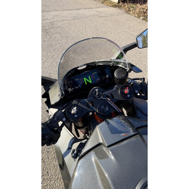 La KTM 990 RC R sinscrit dans lhéritage de la RC8 en affirmant le savoir-faire de KTM en matière de performance et de sportivité. Conçue pour offrir une grande précision sur piste tout en restant adaptée à un usage routier quotidien, elle allie efficacité, confort et composants haut de gamme. Fruit de lingénierie autrichienne, elle incarne pleinement lesprit « Ready to Race » de la marque.
